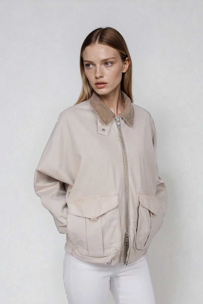 Ein besonderes Highlight ist der kontrastierende Cordkragen, der dem Design eine subtile Vintage-Note verleiht und gleichzeitig für zusätzlichen Komfort sorgt. Die großzügigen aufgesetzten Taschen unterstreichen den entspannten, funktionalen Look und machen INDAL C zu einem vielseitigen Begleiter für den Alltag.