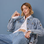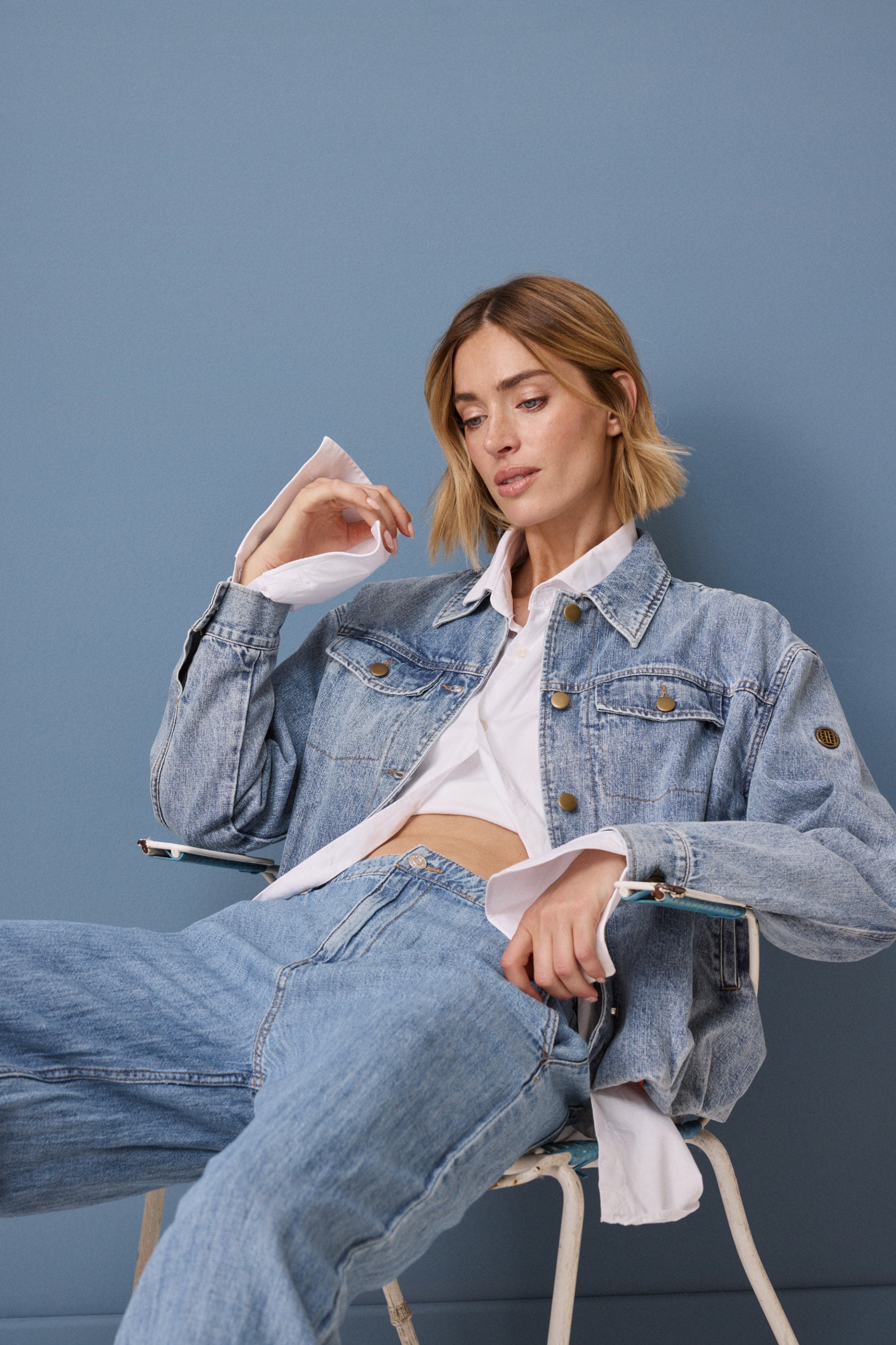 Typische Denim-Details wie die markanten Knöpfe, Brusttaschen und die strukturierte Verarbeitung unterstreichen den klassischen Charakter der Jacke. Gleichzeitig lässt sich LE PEUX vielseitig stylen – lässig zu Denim-on-Denim, clean über Blusen oder als leichter Layer an kühleren Tagen.