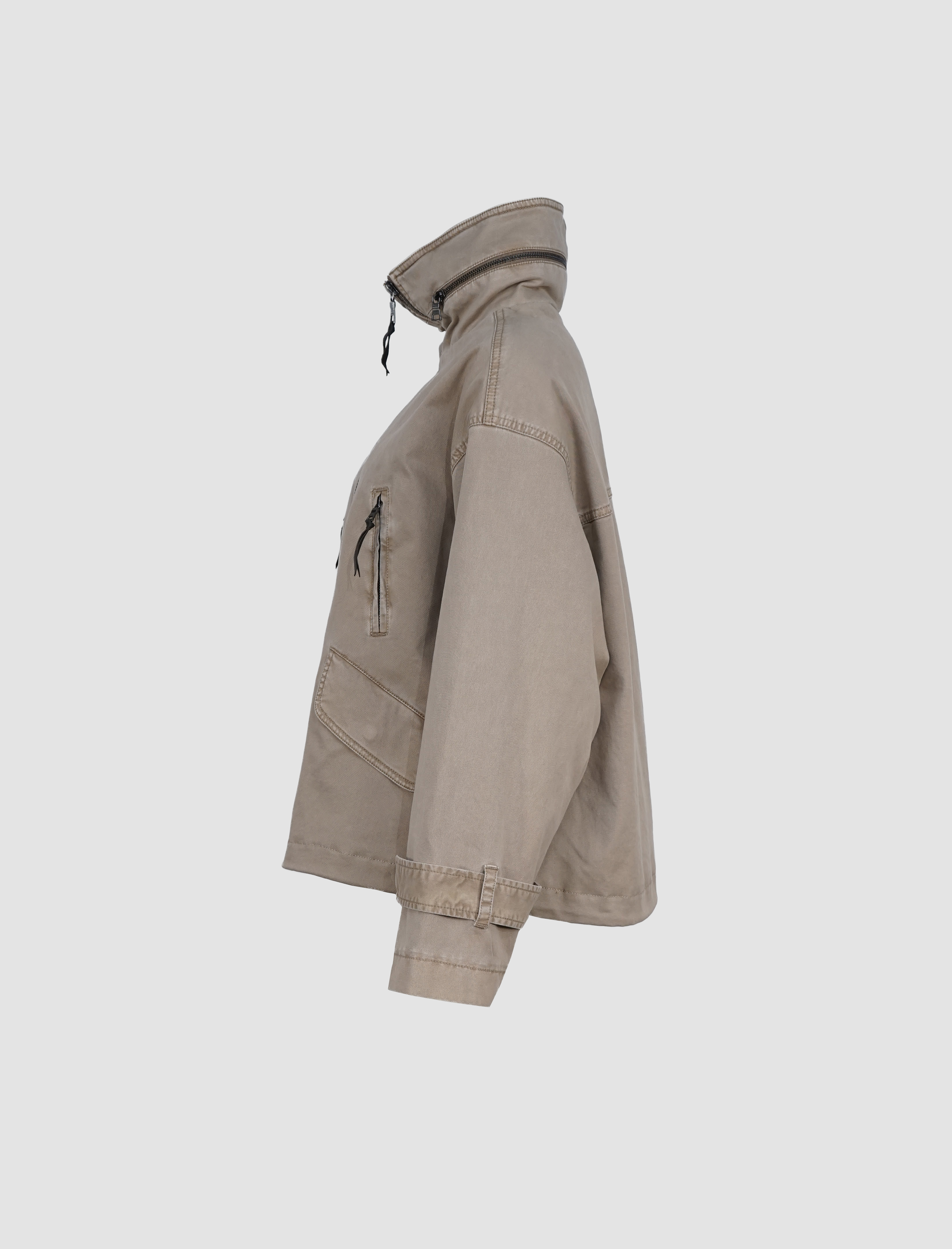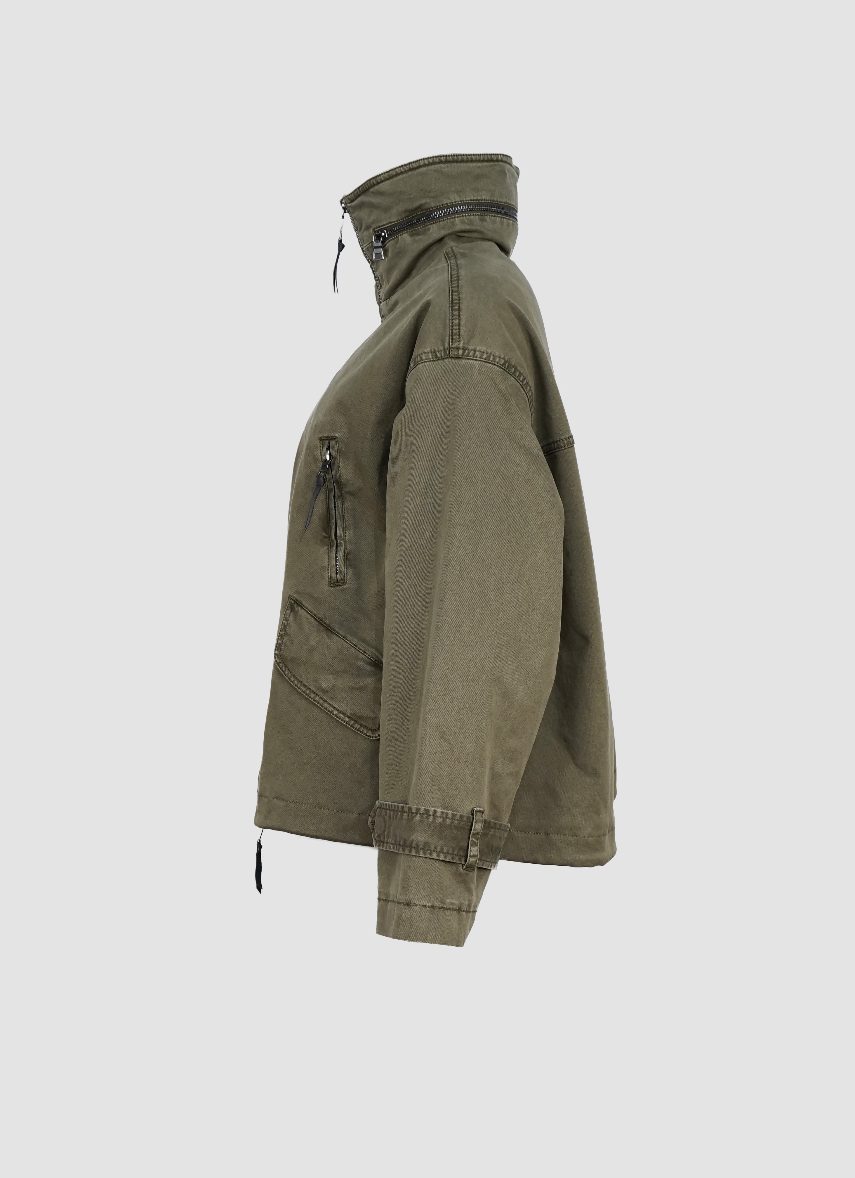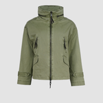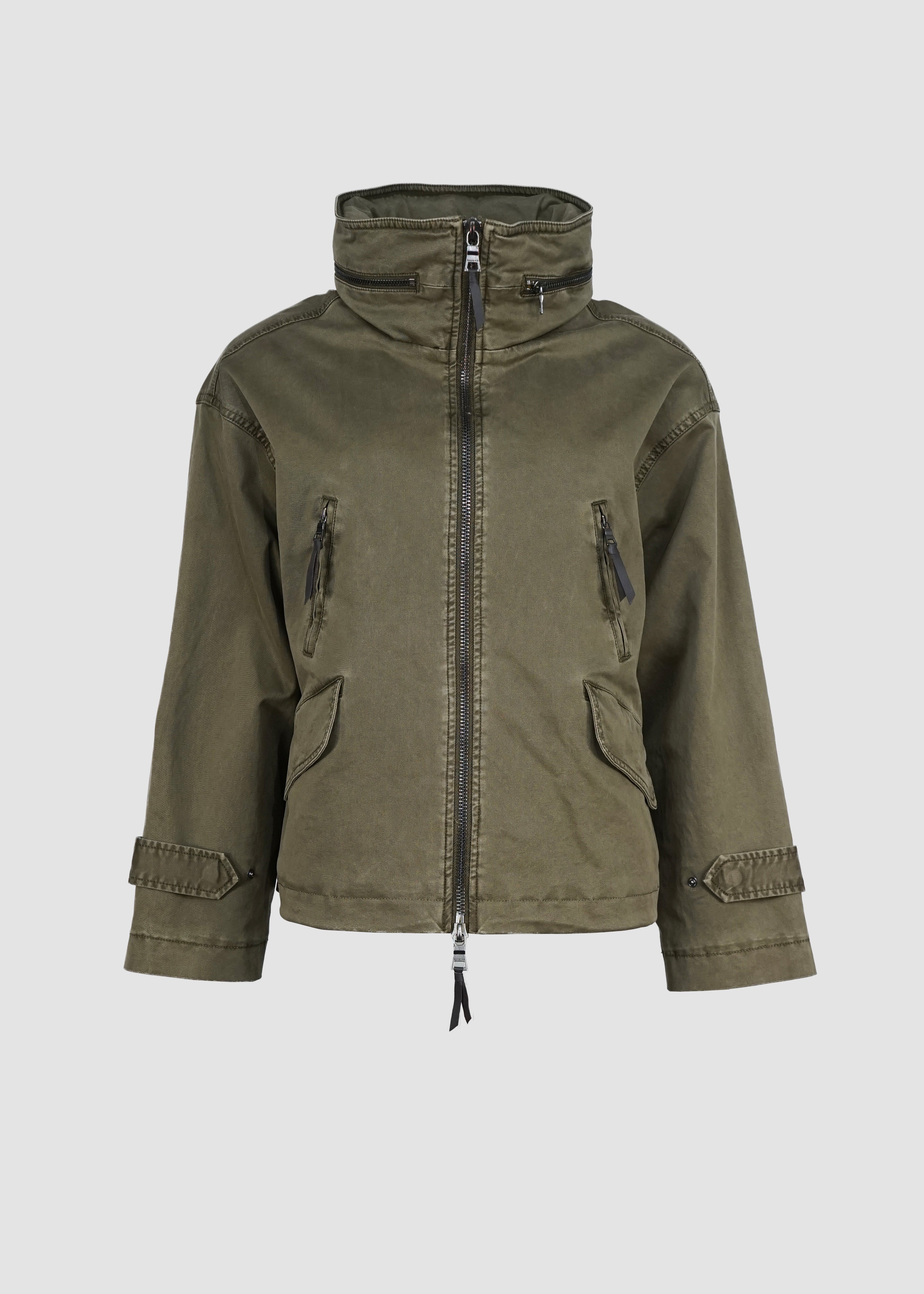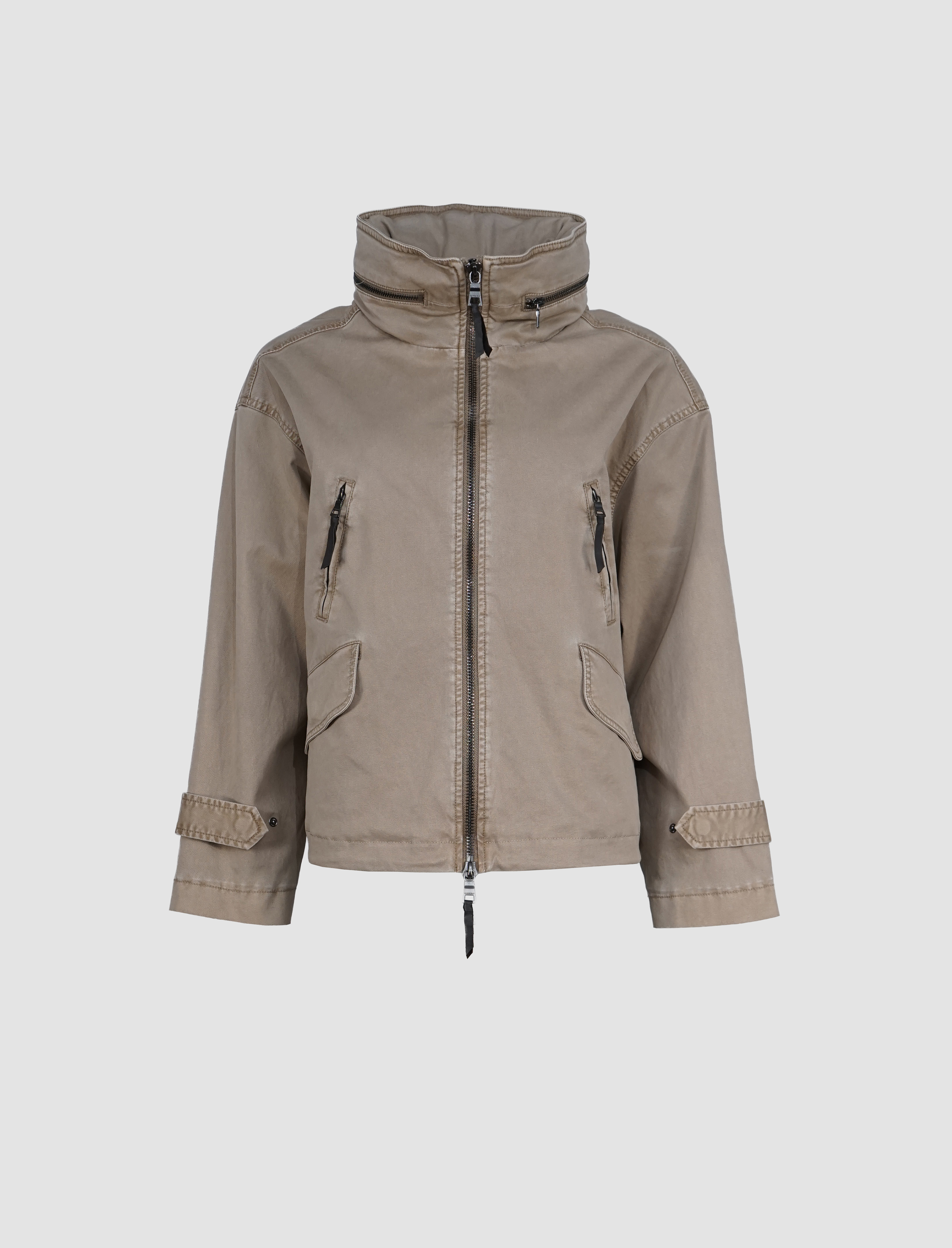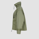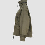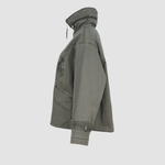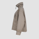 Die hochschließbare Front mit Zwei-Wege-Reißverschluss schützt zuverlässig vor Wind und Wetter, während eine versteckte Kapuze im Stehkragen bei Bedarf per Reißverschluss herausgenommen werden kann – ein cleveres Detail für maximale Flexibilität. Vier praktische Taschen, davon zwei mit Klappen und zwei mit Reißverschluss, runden das Design im modernen Utility-Stil ab und bieten ausreichend Stauraum für unterwegs.