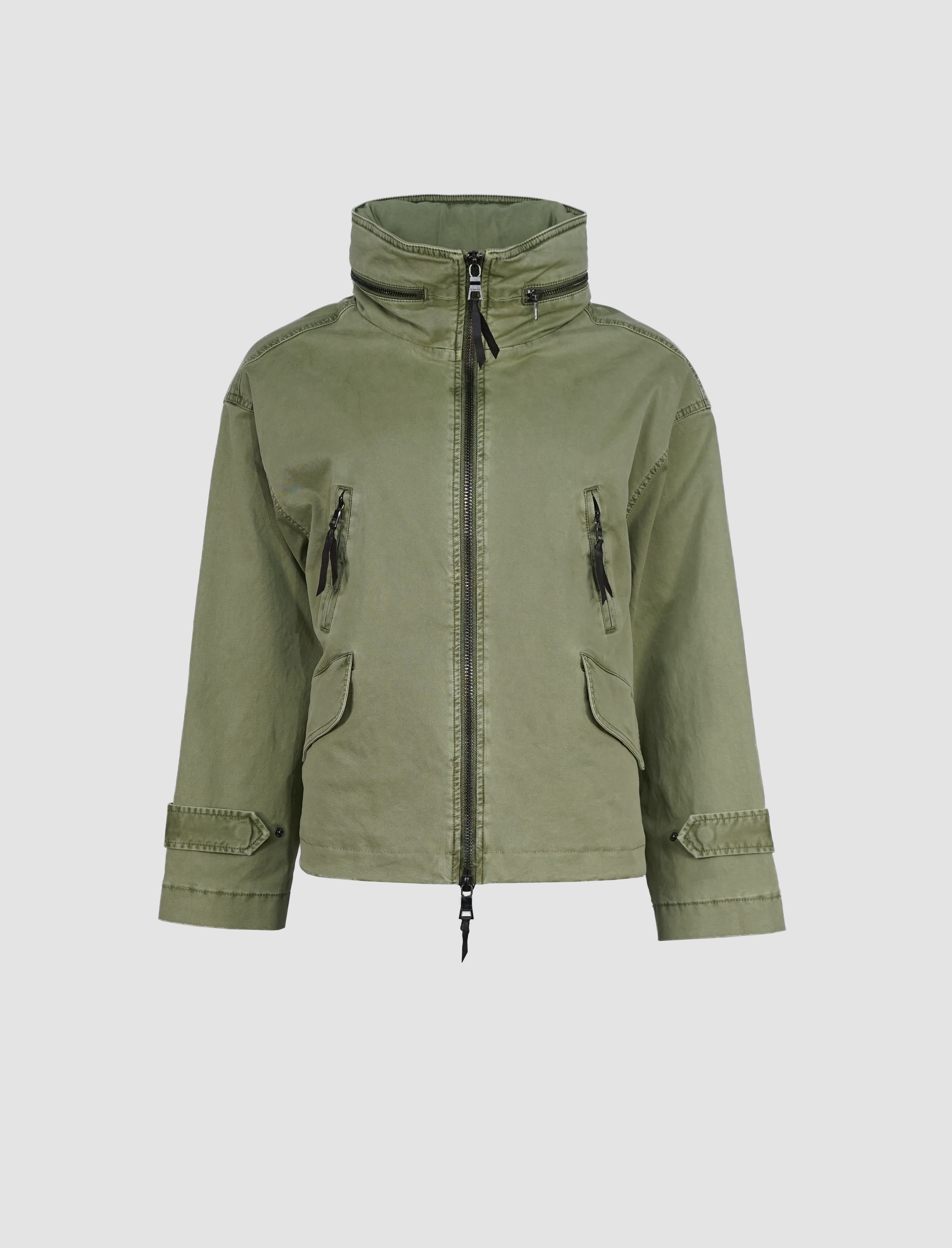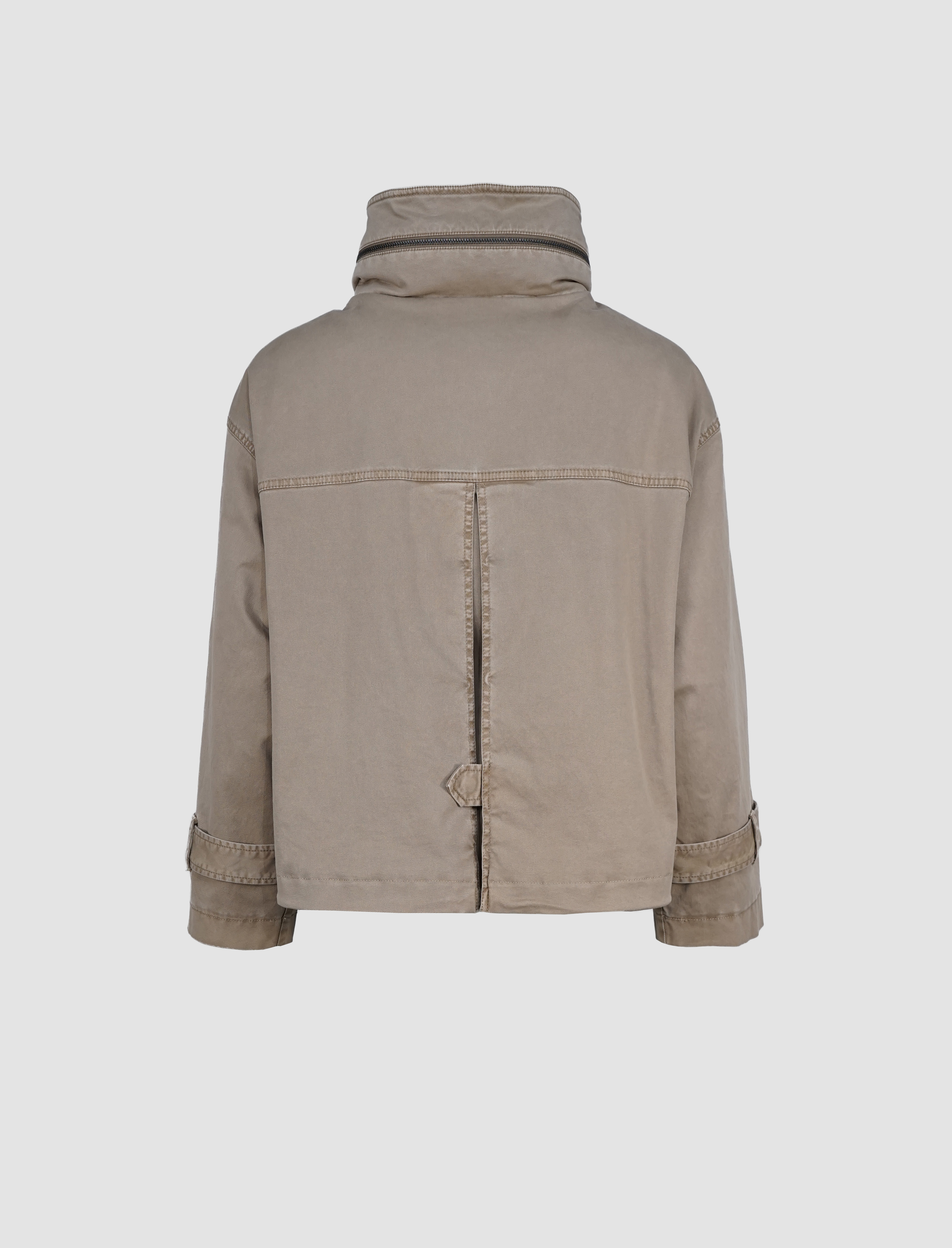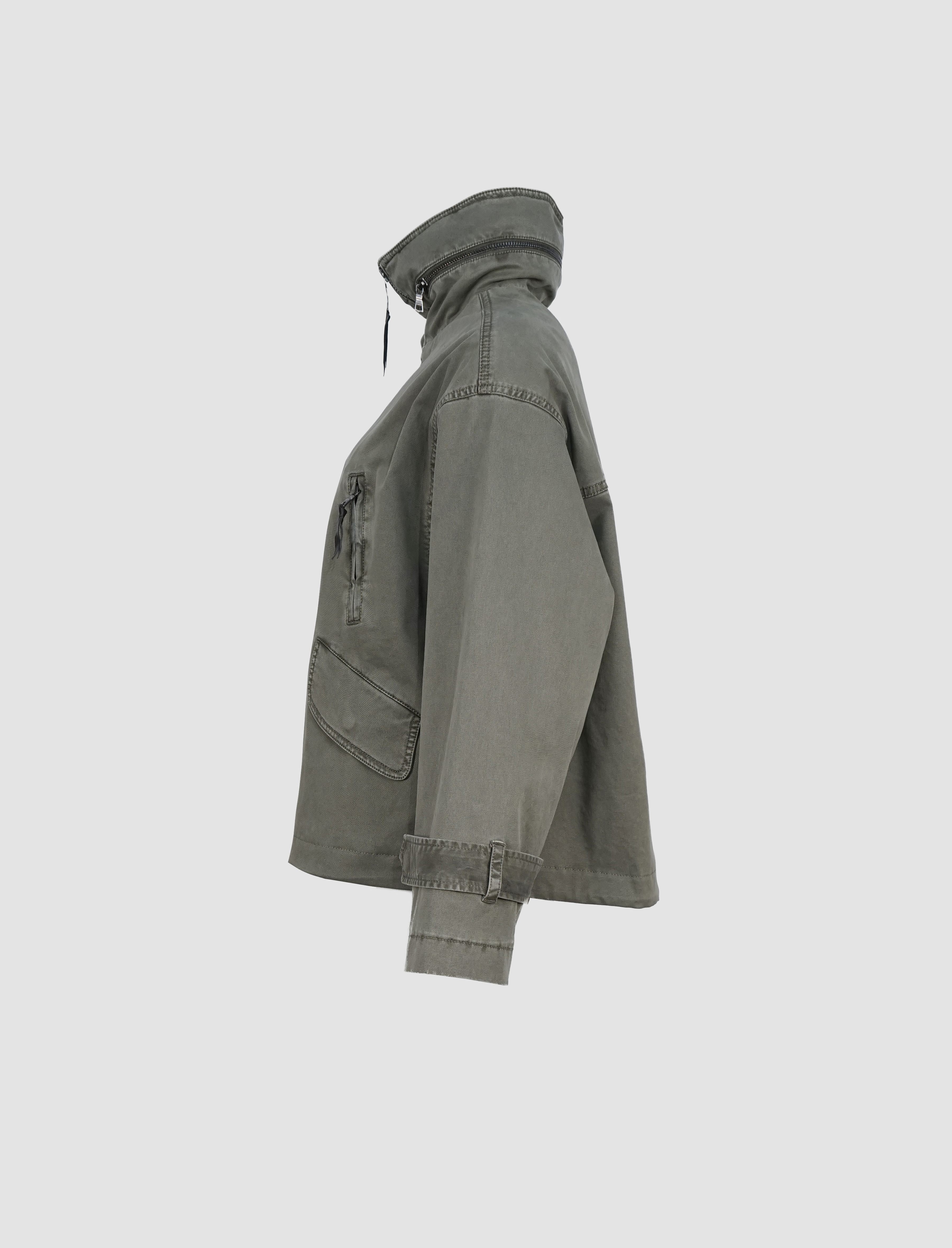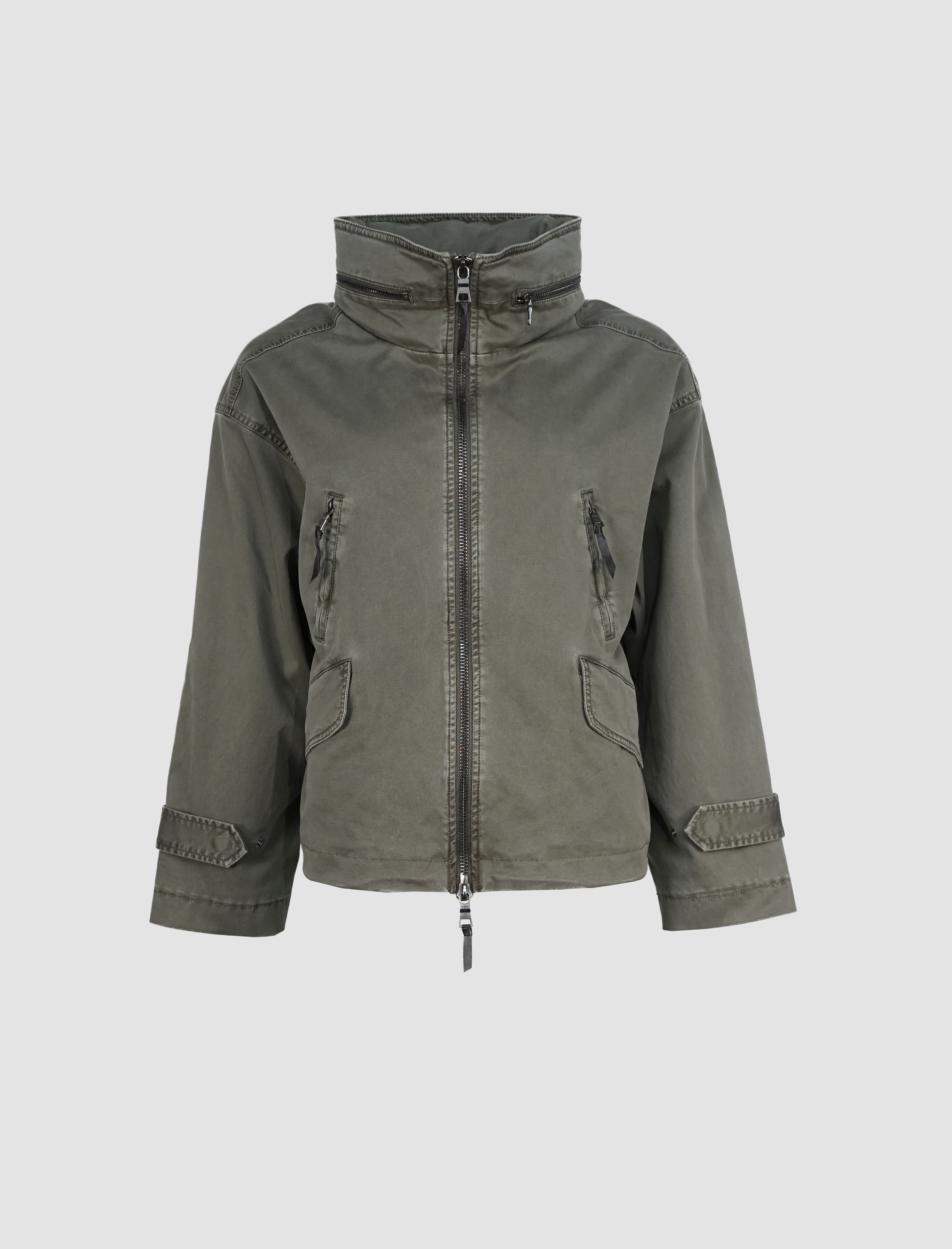 Die hochschließbare Front mit Zwei-Wege-Reißverschluss schützt zuverlässig vor Wind und Wetter, während eine versteckte Kapuze im Stehkragen bei Bedarf per Reißverschluss herausgenommen werden kann – ein cleveres Detail für maximale Flexibilität. Vier praktische Taschen, davon zwei mit Klappen und zwei mit Reißverschluss, runden das Design im modernen Utility-Stil ab und bieten ausreichend Stauraum für unterwegs.