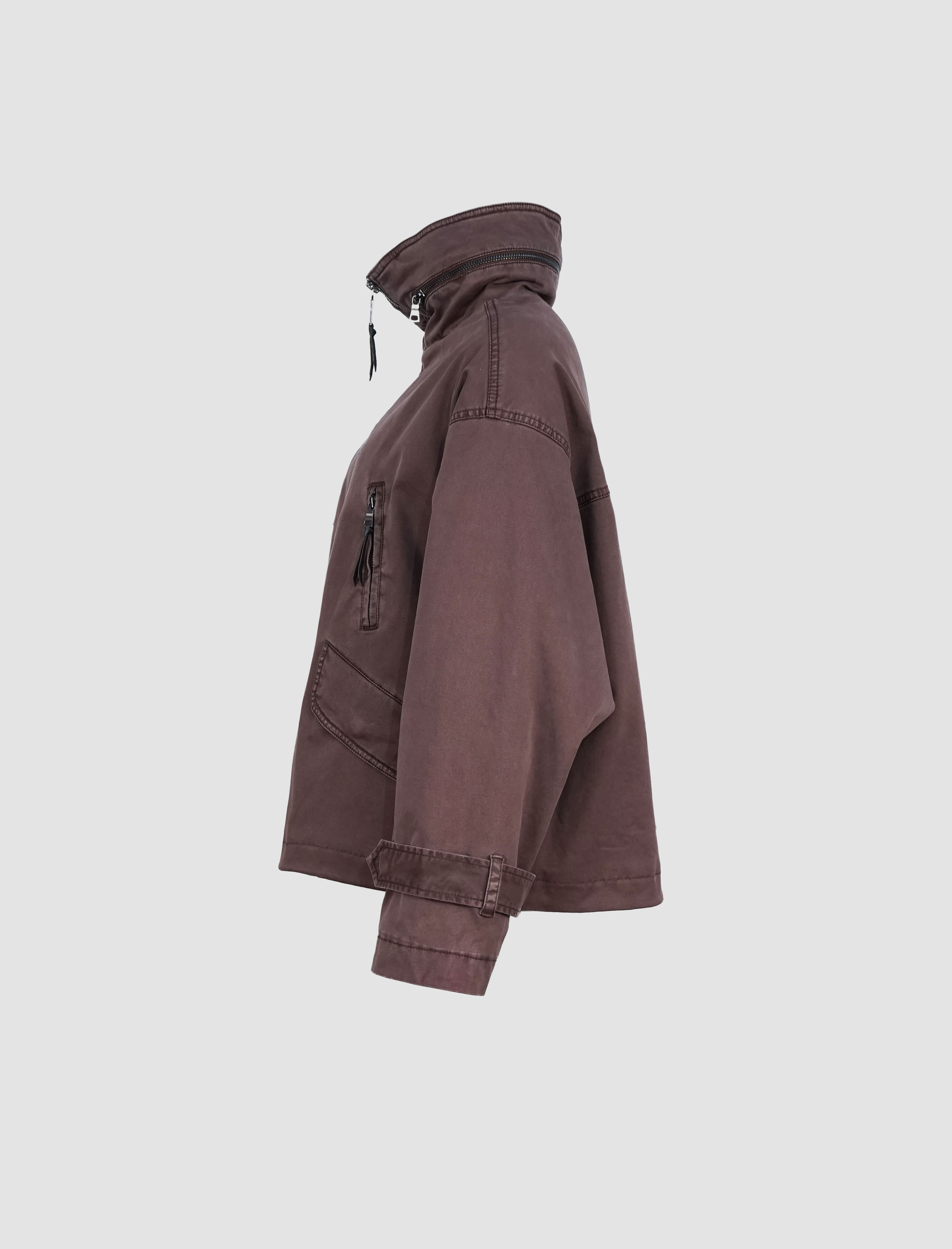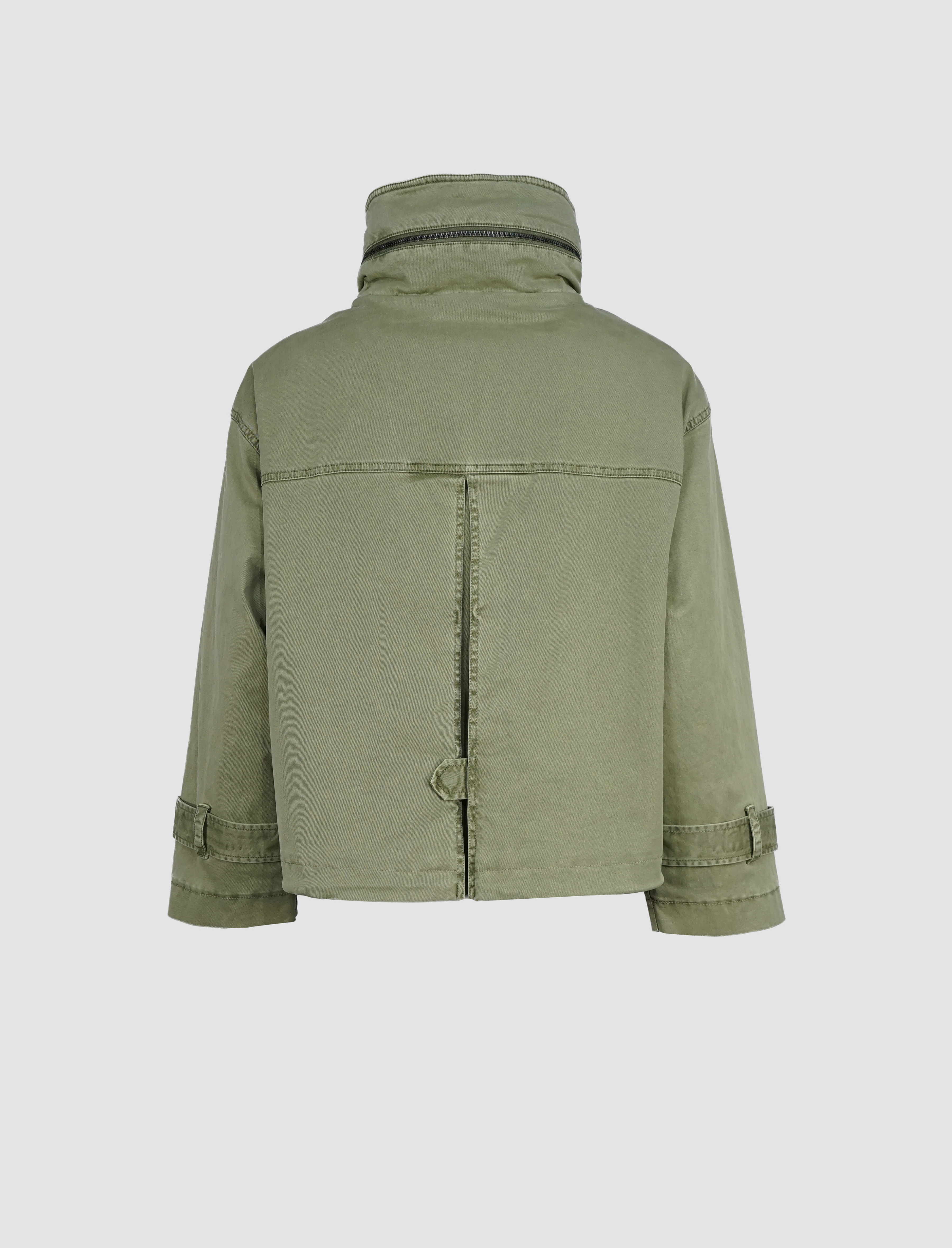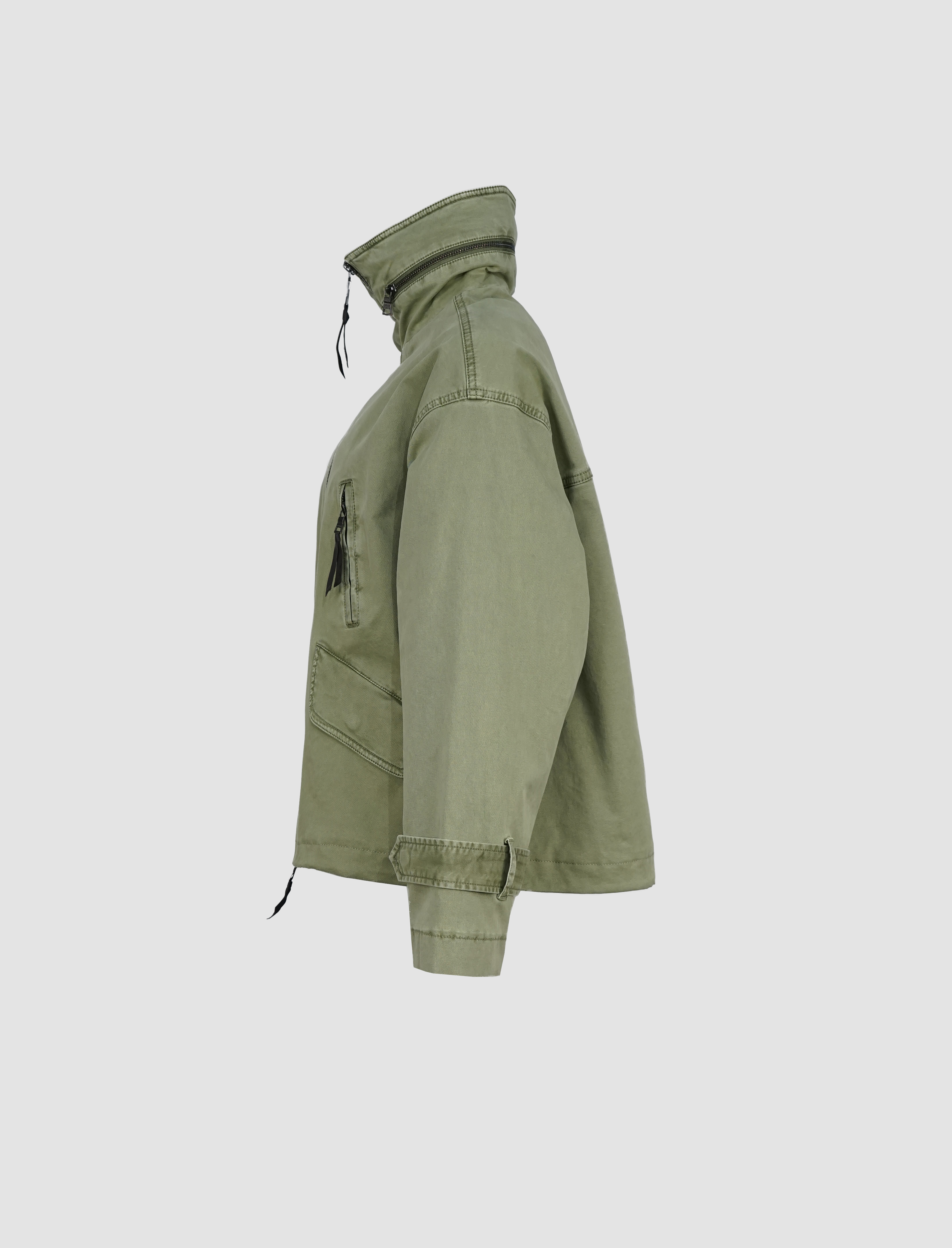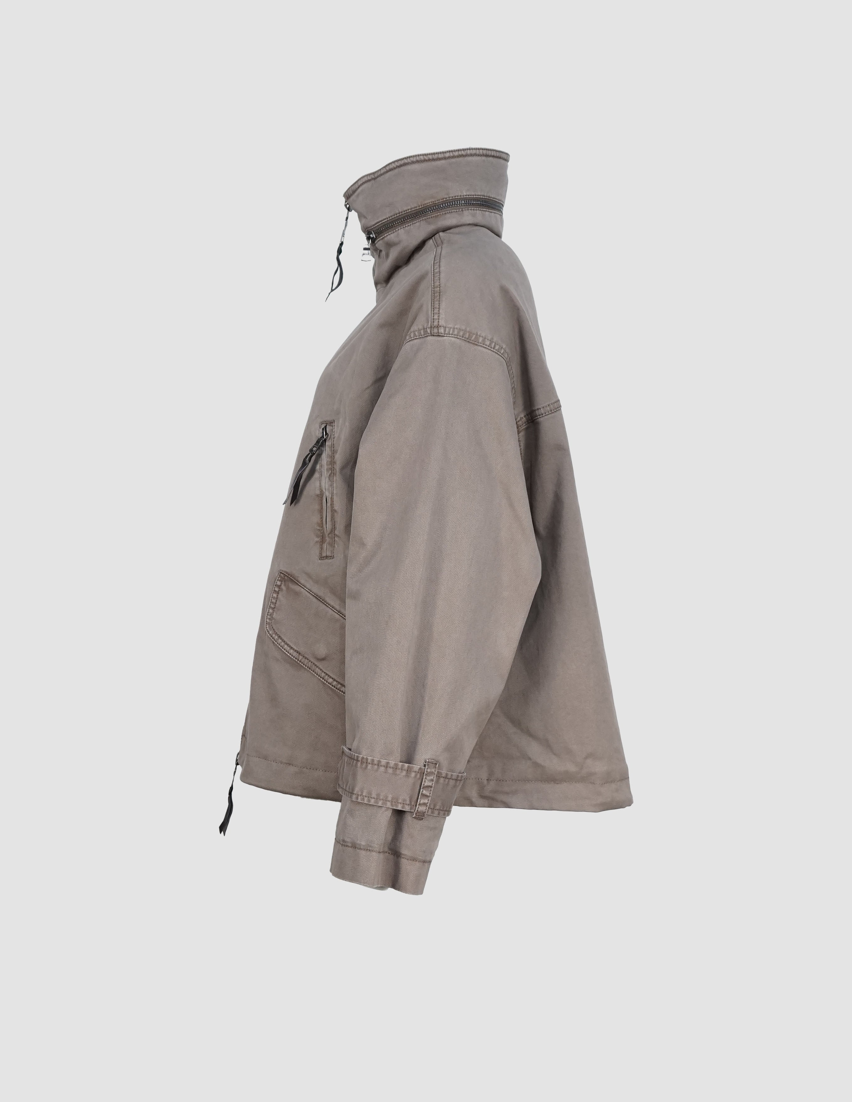 Die hochschließbare Front mit Zwei-Wege-Reißverschluss schützt zuverlässig vor Wind und Wetter, während eine versteckte Kapuze im Stehkragen bei Bedarf per Reißverschluss herausgenommen werden kann – ein cleveres Detail für maximale Flexibilität. Vier praktische Taschen, davon zwei mit Klappen und zwei mit Reißverschluss, runden das Design im modernen Utility-Stil ab und bieten ausreichend Stauraum für unterwegs.